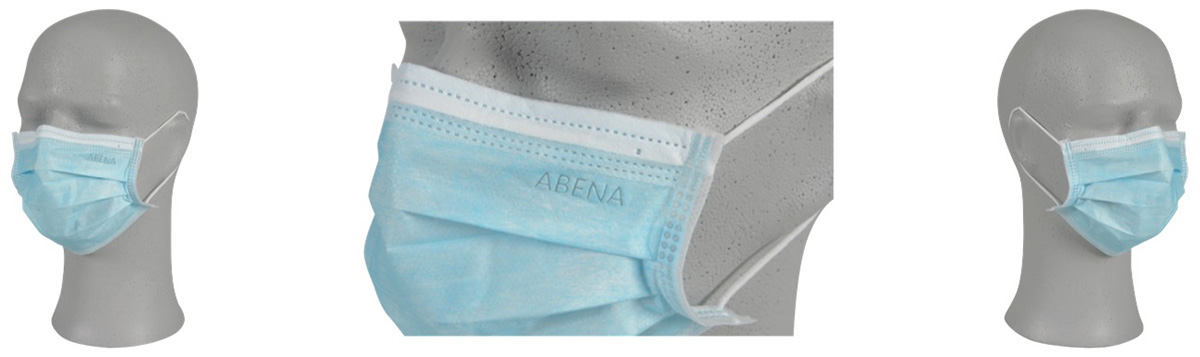 Munskydd med elastiska öronöglor typ IIR, Abena Excellent, 3-lags, blå, engångs