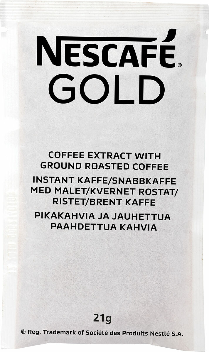 Med NESCAFÉ portionspåsar får du snabbt och enkelt 1,5 liter kaffe. En svart mellanrostad kopp kaffe som doftar lika underbart som det smakar. Hemligheten i smaken är att kaffet är berikat med rostade, finmalda kaffebönor - mikroniserat kaffe. De finmalda kaffebönorna mals 10 gånger finare och frisläpper mer aromer. Det mikroniserade kaffet skapar en mer fulländad och mjuk smak av färskbryggt kaffe. Njut av en sofistikerad, harmonisk och aromatisk kopp som passar lika bra svart som med mjölk. Perfekt till konferensrummet.