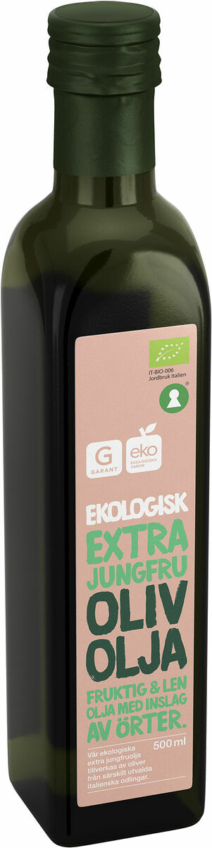 Vår ekologiska extra Jungfruolja tillverkas av oliver från särskilt utvalda italienska odlingar. Fruktig och len olja med inslag av örter.