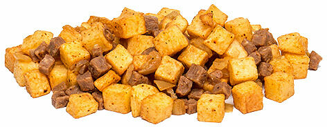 Potatis (potatis, rapsolja, druvsocker, salt), nötkött* (16%), stekt lök (stekt i raps-och solrosolja), vatten, salt, kryddor (bl. a paprika, chili, vitlök, libbsticka), potatismjöl, potatisstärkelse, kryddextrakt. *Ursprung: SE.