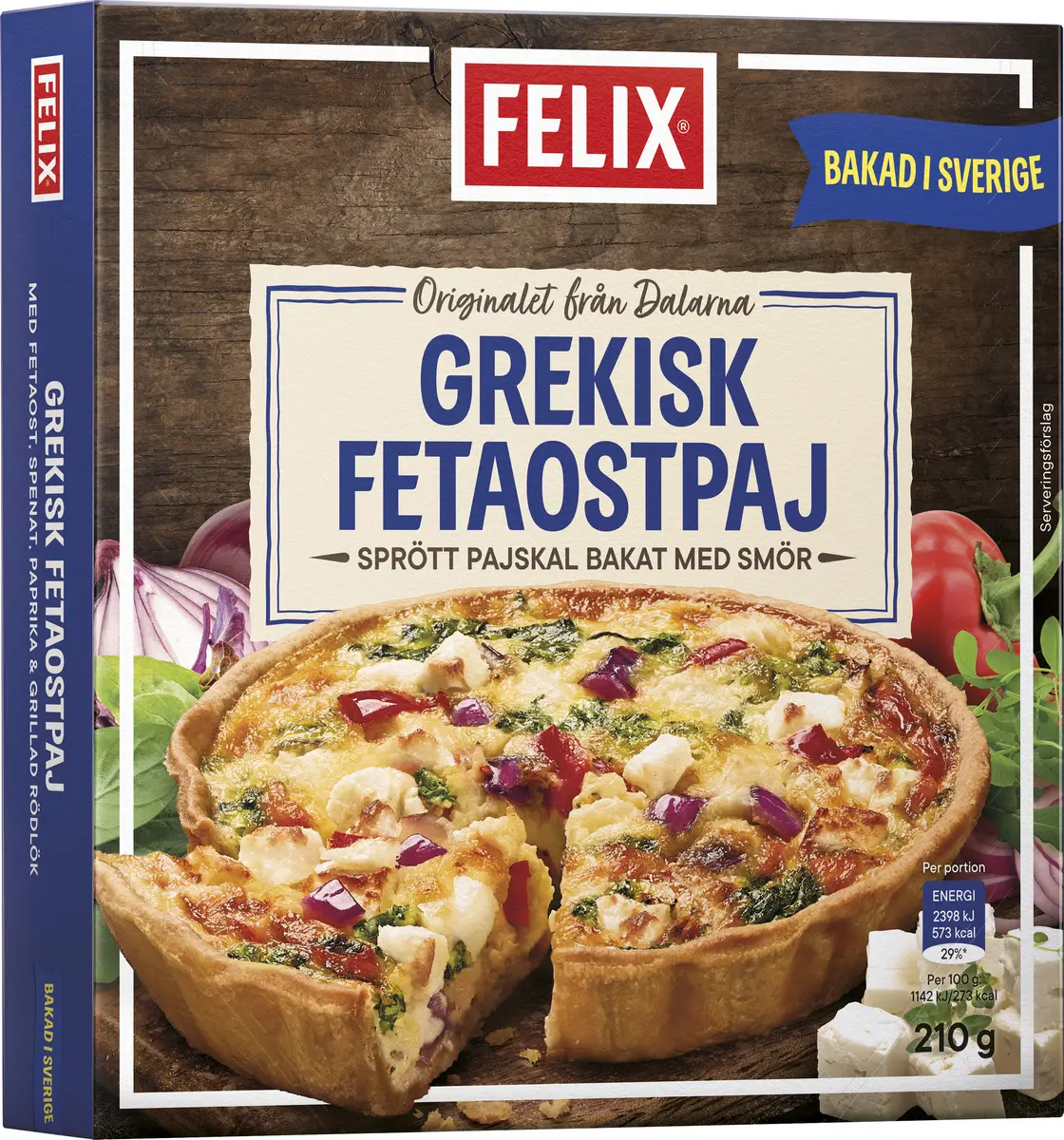 Felix Grekisk fetaostpaj har en krämig fyllning gjord på fetaost, spenat, paprika, grillad rödlök, färsk mjölk och grädde samt svenska ägg från frigående höns. Pajskalet är sprött och bakat med smör för den goda smakens skull! Snabb & god lunch på bara 3,5 minuter! Felix paj passar perfekt som en lätt lunch eller tillsammans med en sallad. Snabbt, gott och enkelt! Bakad med omsorg i Dalarna. Läs mer om Felix produkter på felix.se Smaklig måltid!