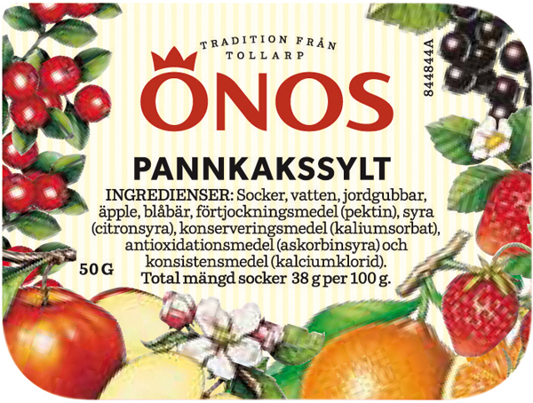 Pannkakssylt i praktisk portionsförpackning tillagad på jordgubbar, äpplen och blåbär. Genom att alltid använda de bästa råvarorna kan vi stolt säga att vi vet hur kvalitet ska smaka. Tillagad i Tollarp i Skåne. 2,4 kg. 48x50 g.