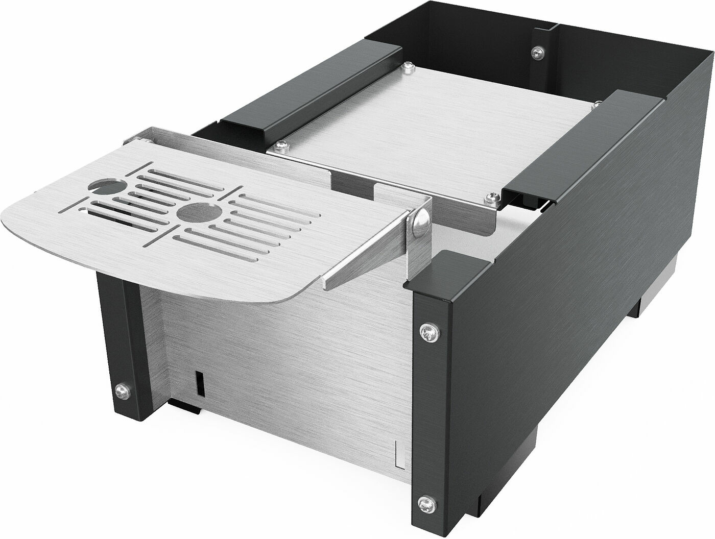 Om du behöver fylla karaffer eller termosar med kaffe, varm choklad eller hett vatten är det önskvärt att kunna öka tapphöjden från 120 till 240 mm. Som tillbehör erbjuder vi en piedestal för detta ändamål. Om du tar bort spillbrickan kan du öka tapphöjden till max. 290 mm.