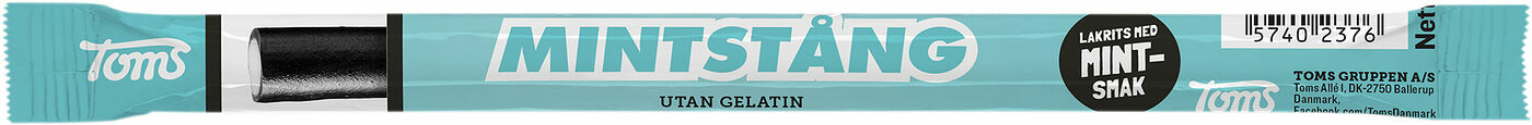 En av Toms populära stänger, vardagligt kallad pingvinstång. Mintstången är svart med vit fyllning och den har en frisk mintssmak. Du finner även denna stång som 4-pack samt i små bitar i lösviktsförsäljningen. Mintstången är utan gelatin och innehåller endast naturliga färgämnen. Pingvinstängerna finns i många olika smaker så att alla kan hitta sin favorit. Du vet väl att du även kan köpa Toms Mjölkchoklad med små bitar av Mintstång.