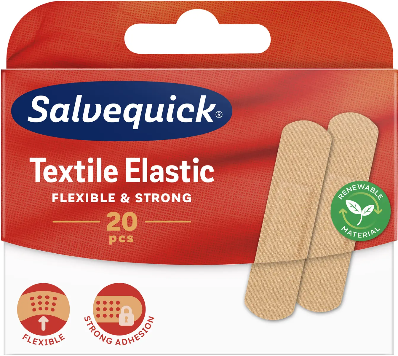 Textile Elastic plåster är ett elastiskt och flexibelt textilplåster med stark häftförmåga. Plåstret i textil är lämpligt för armbågar, knän, leder och kroppsdelar med mycket rörelse. Detta textilplåster låter huden andas och är smutsavvisande. Dessa plåster i textil är designade med rundade hörn så att det sitter bra på huden.
