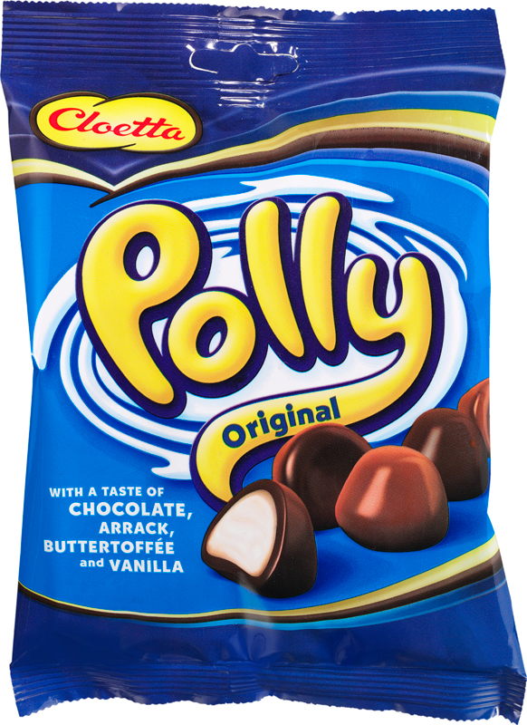 Polly Original, med både mörka och ljusa kulor i påsen! De ljusa Polly-kulorna har två smaker, arrack och smörkola, medan de mörka kulorna har smak av vanilj. Så mumsigt att det är omöjligt att bara ta en!
