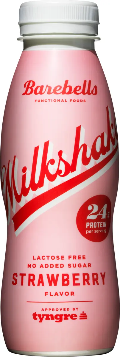 Proteinmilkshake med smak av jordgubb.