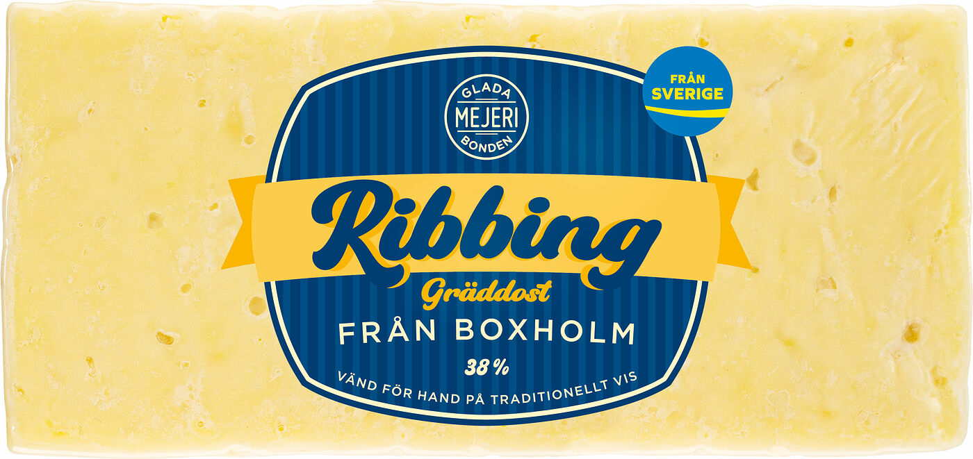 Ribbing Lagrad 5-8 mån, ca 600 gr, 38%. En gräddost som lagrats för att varsamt utveckla de karaktäristiska och höga smakerna – syra, friskhet och gräddighet. Ystad av svensk mjölk från glada bönder vänd för hand på traditionellt vis.