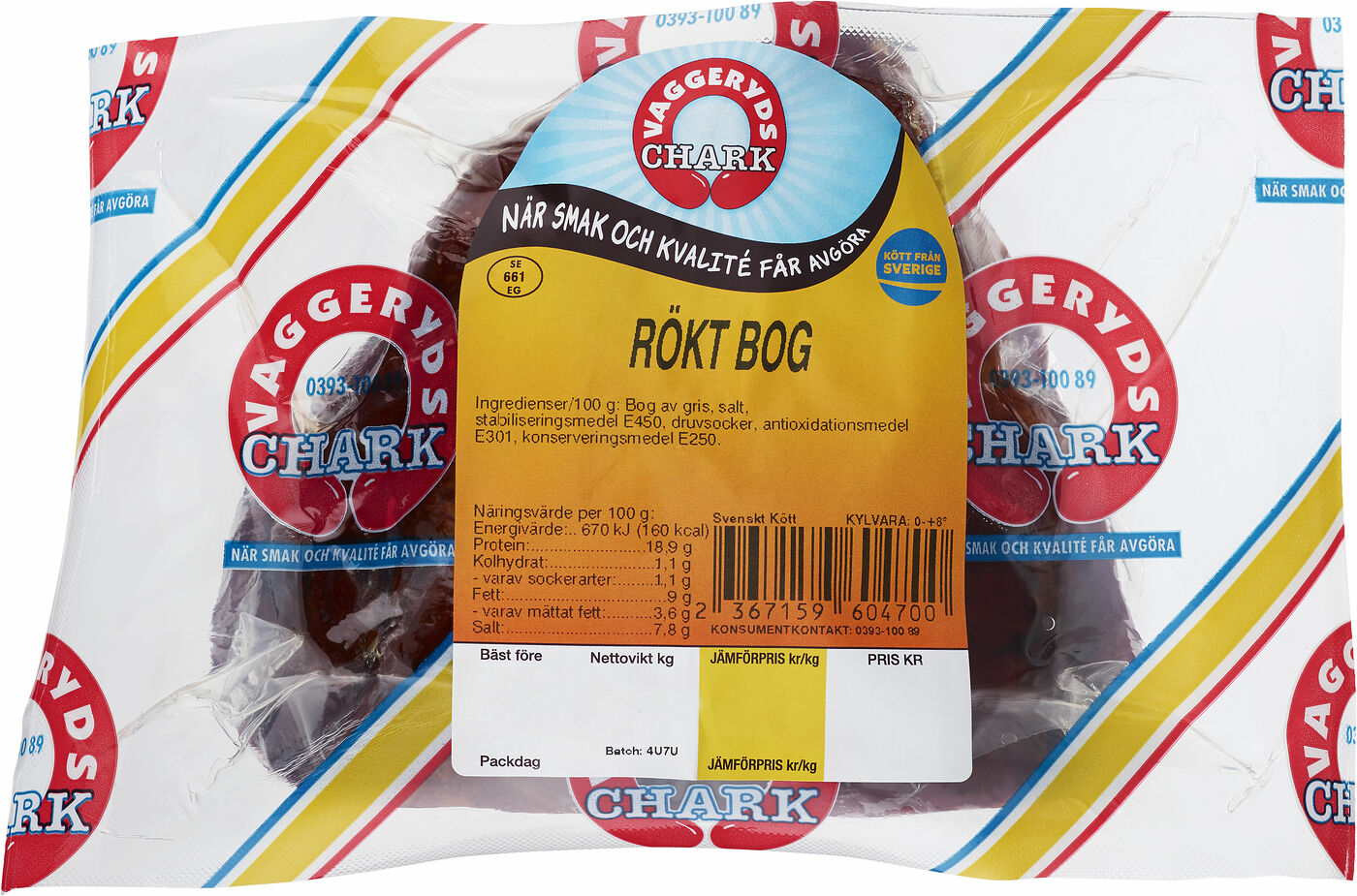 Griskött, Koksalt, Stabiliseringsmedel E450, Druvsocker, Askorbat (Antioxidationsmedel E301), Nitrit (Konserveringsmedel E250)