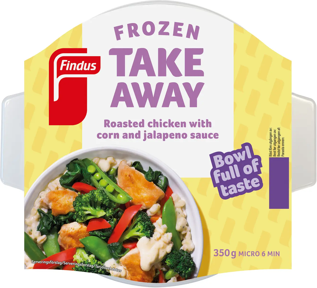 Rykande heta Take Away-bowlen från Findus, full av smak, matglädje & inspiration! Findus Roasted chicken with corn & jalepeno sauce, är en färdiglagad rätt utan några kompromisser. Du möts av en välbalanserad bowl, full av smak, krispiga grönsaker och matvete som toppas med grillad kyckling och het jalepenosås. En måltid och smaksensation som passar utmärkt till lunchen på jobbet, utflykten eller varför inte till middagen där hemma som din vardagshjälte? Smaklig måltid!