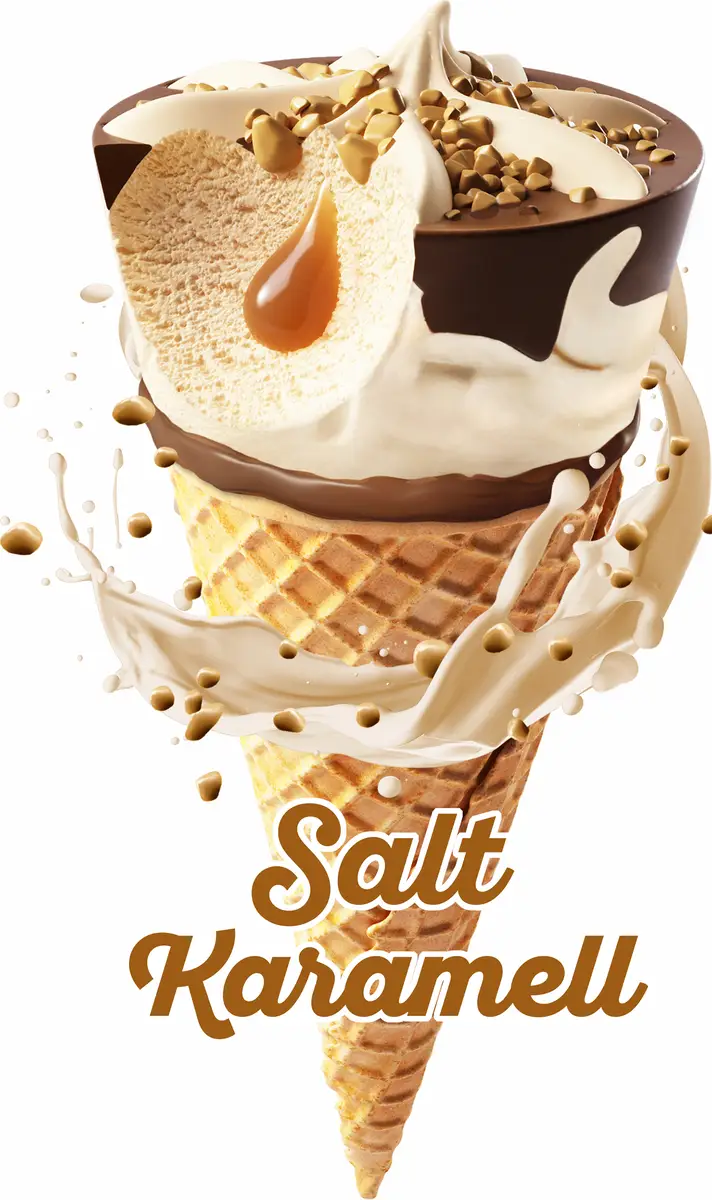 Len saltkaramellglass gjord på svensk färsk grädde smaksatt med Dulce de leche, salt kolasås, smörkolabitar med kakaodopp i bakat rån. En succésmak! Salted Caramel är en populär blandning av sött och salt.