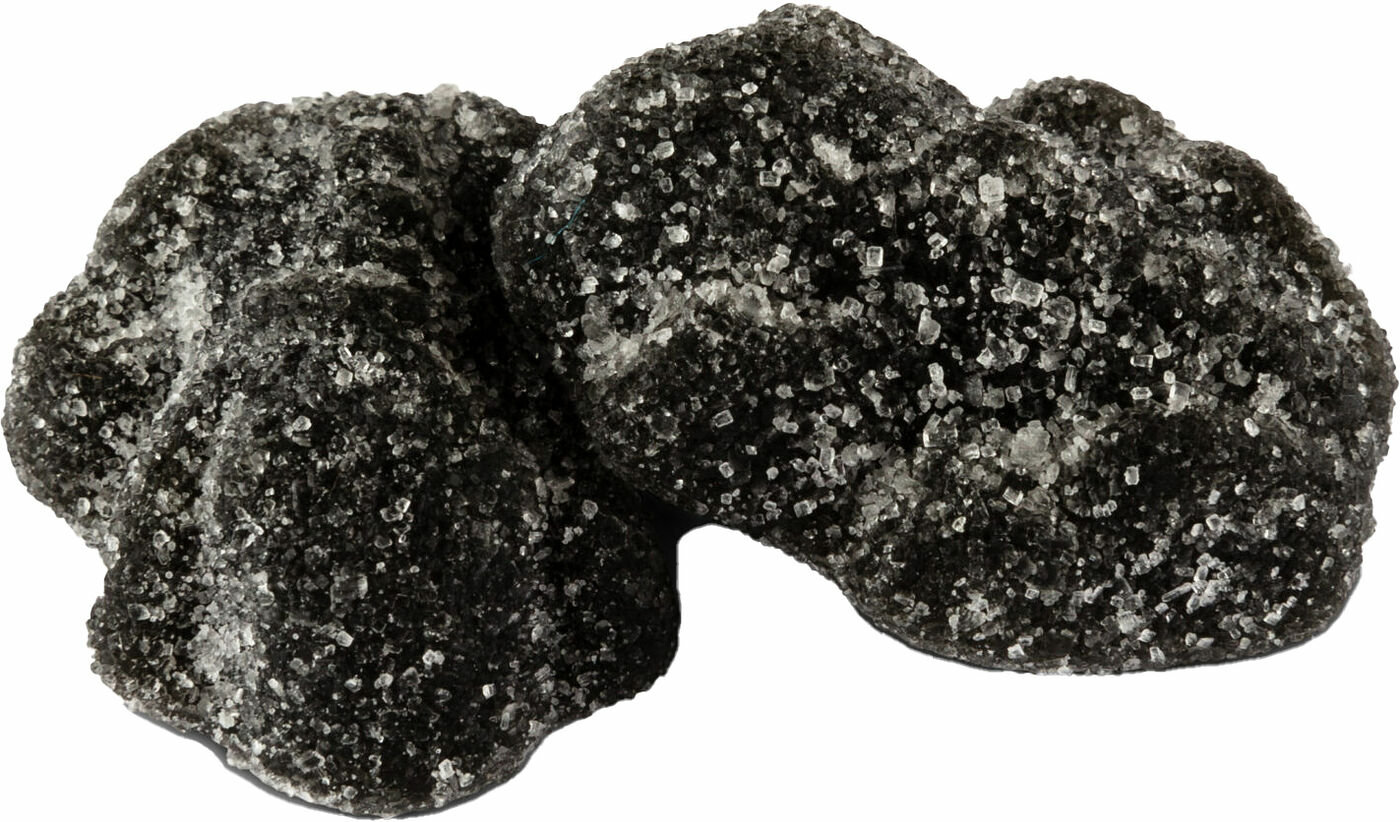 Gelégodis med saltlakritssmak.