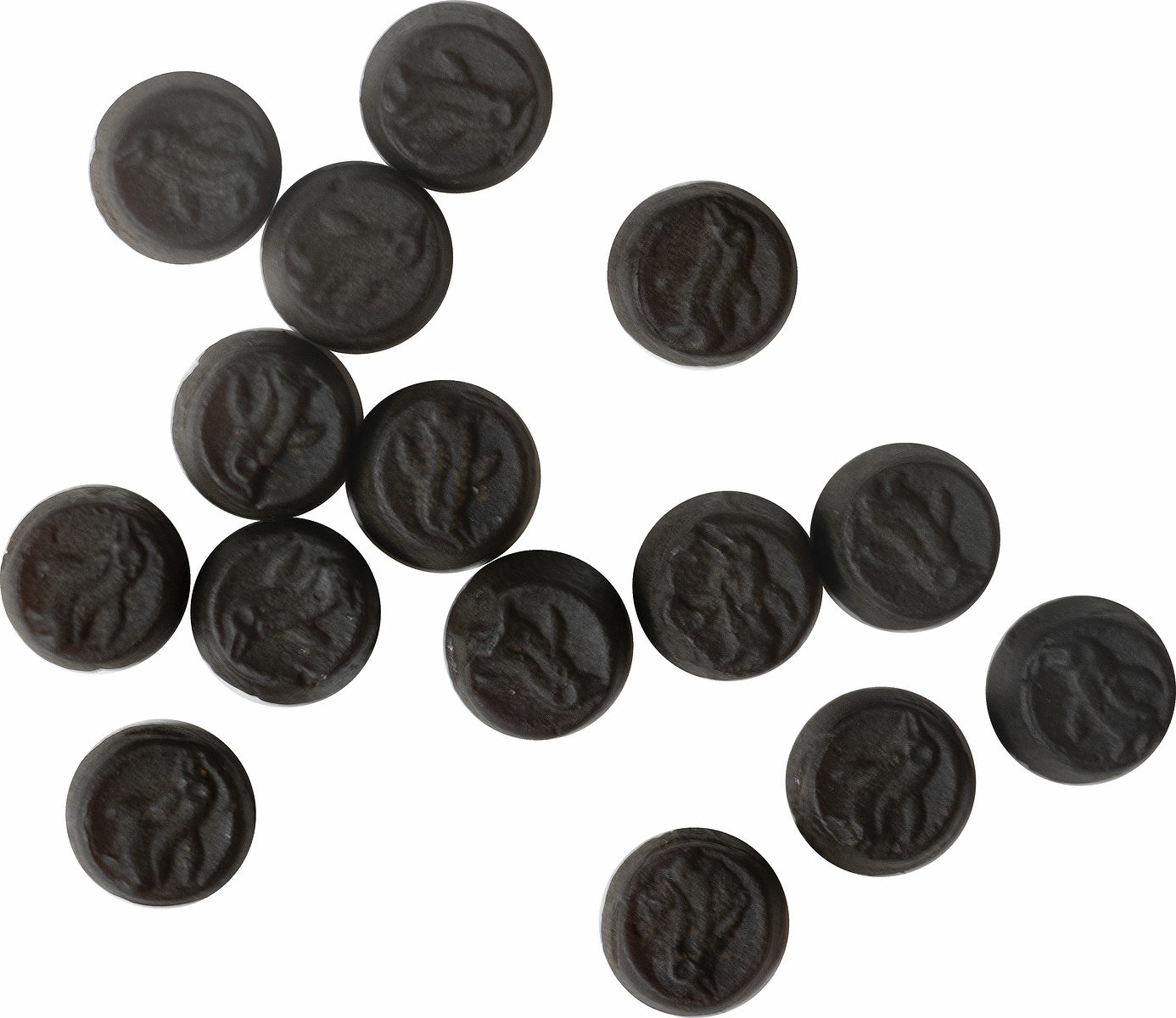 Ingredienser: Modificeret majsstivelse/modifierad majsstärkelse, sukker/socker, ammoniumklorid 8%, gelatine, rålakrids 4%, fortykningsmiddel/förtjockningmedel (arabisk gummi/gummi arabicum), salt, aromaer/aromämnen, vegetabilsk olie/olje/olja (kokos, raps), overfladebehandlingsmiddel/ytbehandlingsmedel (carnaubavoks/-vax).