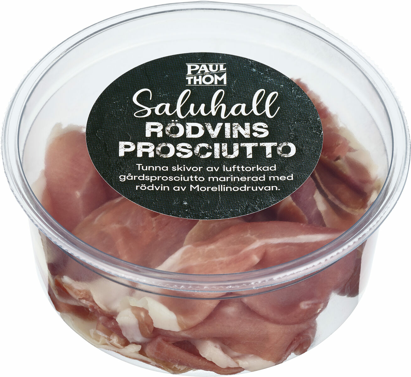 Sagolik rödvinsmarinerad gårdsprosciutto! Smakrik och delikat i tonen, mjäll textur, råvaran marinerad i 14 dagar i rödvin. Lufttorkad i 12 månader.
