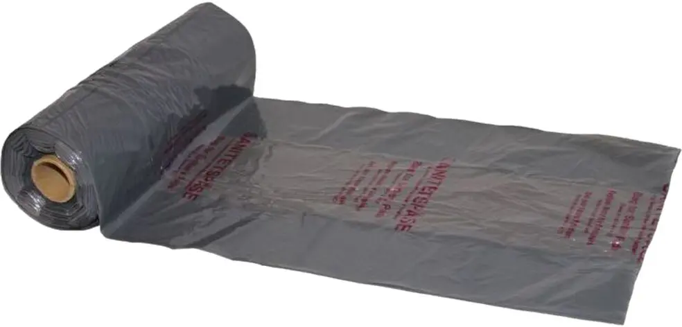 Av grå LLD-polyeten, med svensk och utländsk text.