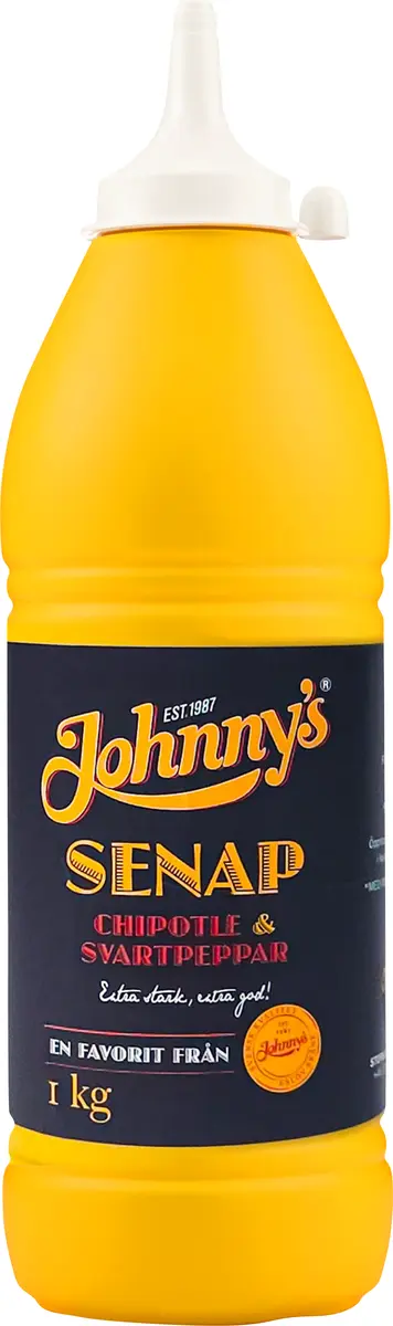 Johnnys Senap Chipotle & Svartpeppar är en hetlevrad och spännande senap! En intensiv hetta väcker smaklökarna till liv när pepparfrukterna blixtsnabbt anger sin närvaro. 1987 började Johnny göra sin karaktärsfulla senap som tillverkas lokalt i vår senapsfabrik i Eslöv. Smakar gott som het sås till kött eller fisk eller som smaksättare i marinader eller grytor. Senapen passar också bra i en het majonnäs.