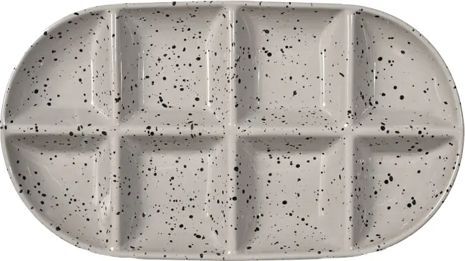 Ett fat – oändliga möjligheter. Servera tapas, tacos eller plockmat på samma tallrik med Ditte serveringsfat, som kombinerar praktisk funktion med elegant design. Den grå tonen med subtilt svart stänkmönster ger varje fat en unik karaktär.