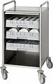 Serveringsvagn från Bonamat med 4 svängbara hjul (varav 2 med broms). Utrustad med höjdjusterbar spillbricka upp till 300 mm.