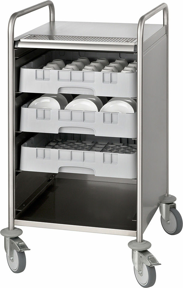 Passande för diskbackar 500x500 mm (medföljer ej). Serveringsvagnen inkluderar 2 sidopaneler samt en bakpanel. Rostfritt stål.