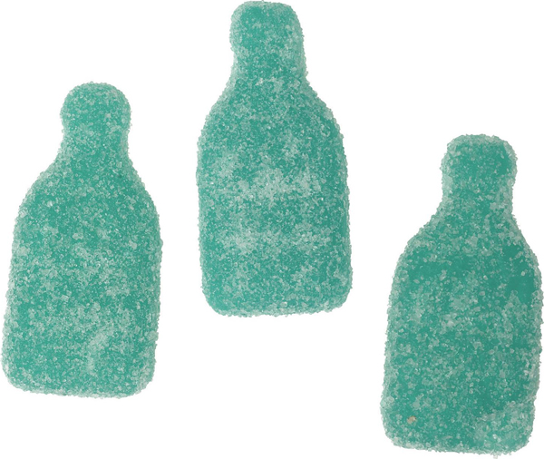 Blå godisflaskor av surkanderat vingummi. Utan palmolja.