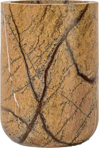 Stilren och sobert lyxig, med en rak form och rundad botten, blir Sten vinkylare ett starkt inslag på bordet. Den bruna skogsmarmorn är tung och gedigen, med naturliga, oregelbundna mönster som ger varje vinkylare ett unikt uttryck.