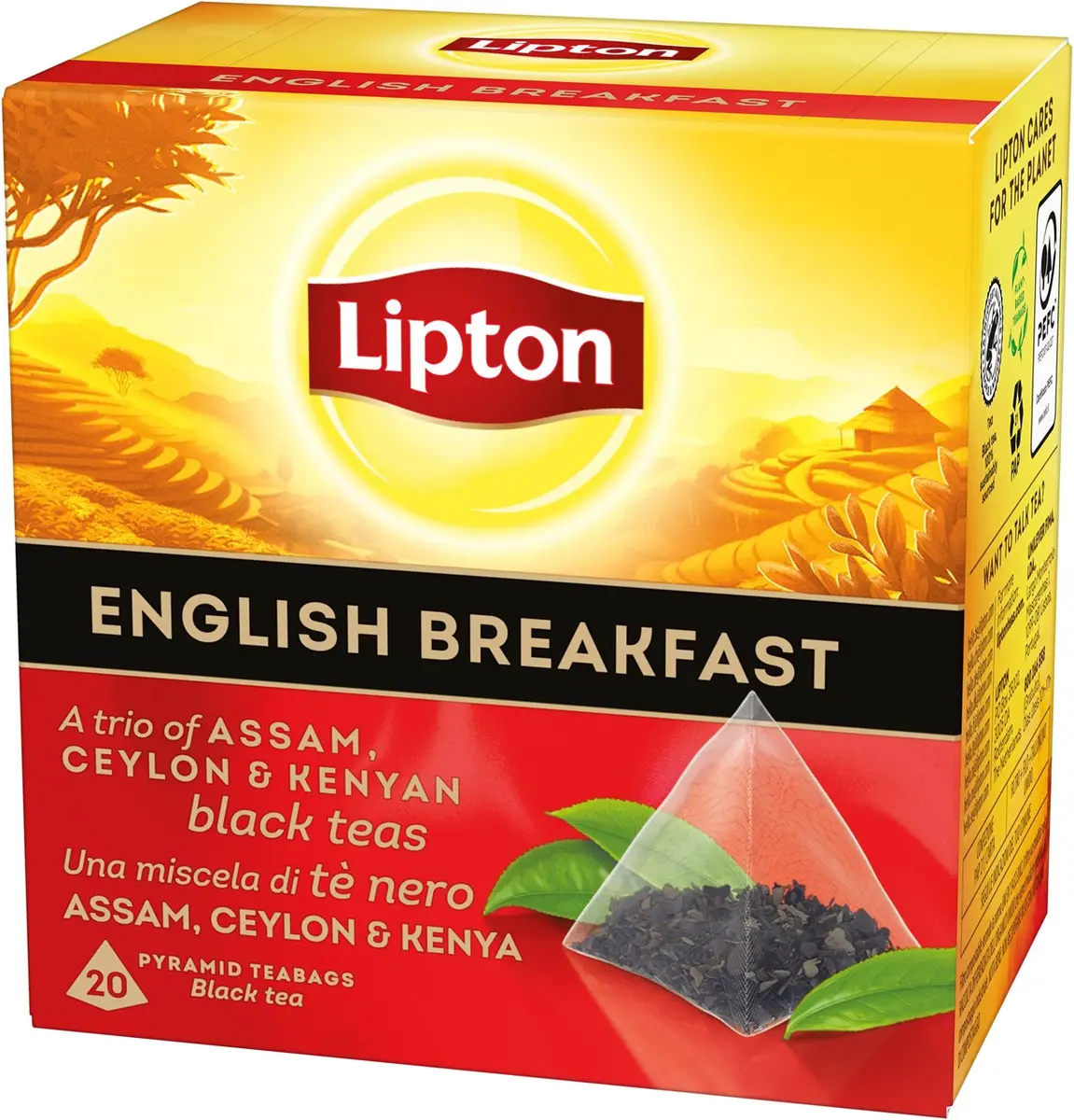 Börja morgonen på rätt sätt med Lipton English Breakfast, en livfull blandning av Assam, Ceylon och Kenyanskt svart te. Våra unika pyramidformade tepåsar är speciellt framtagna för en perfekt infusion, vilket frigör aromer och den fylliga smaken av svart te som gör varje frukost till en njutningsfull stund.