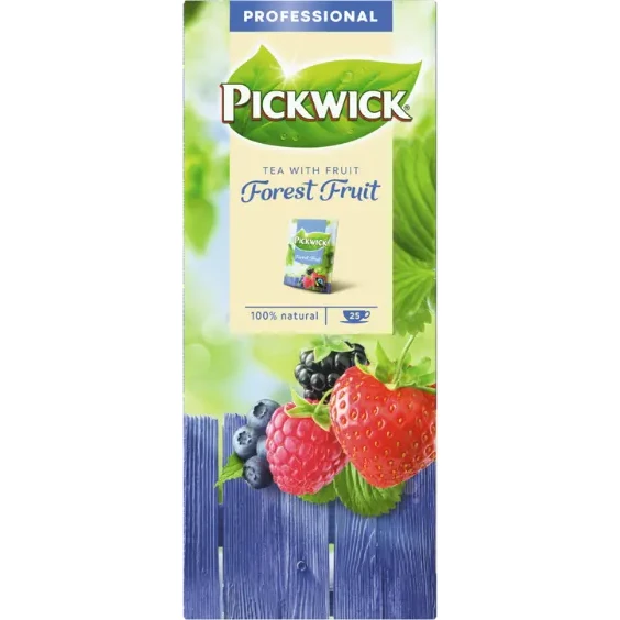 Pickwick Skogsbär Fairtrade är ett fruktigt svart te med skogsbär. Dessa frukttevarianter är 100 % naturliga temixar baserade på svart te och riktiga fruktbitar. Förpackat i ett helt slutet papperskuvert som kan återvinnas med pappersavfallet.