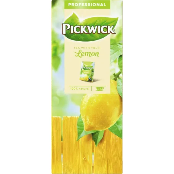 Njut tillsammans med dina kollegor av detta härliga Pickwick Citron Fairtrade-te med citron. Frukttevarianterna är 100 % naturliga temixar baserade på svart te och riktiga fruktbitar. Förpackat i ett helt slutet papperskuvert som kan återvinnas med pappersavfallet.