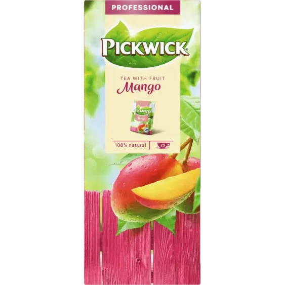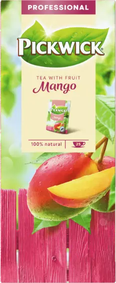 Pickwick Mango är ett utsökt, friskt svart te med riktiga mangobitar. Frukttevarianterna är 100 % naturliga temixar baserade på svart te och riktiga fruktbitar. Teet är förpackat i ett helt slutet papperskuvert som kan återvinnas med pappersavfallet.