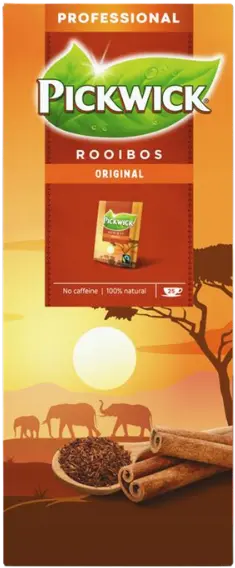 Vår goda Pickwick Rooibos Original innehåller kanel, ingefära och kardemumma. Vårt rooibossortiment består av koffeinfria blandningar – perfekta för en lugn stund. Förpackat i ett helt slutet papperskuvert som kan återvinnas med pappersavfallet. Produkten är Fairtrade-certifierad.