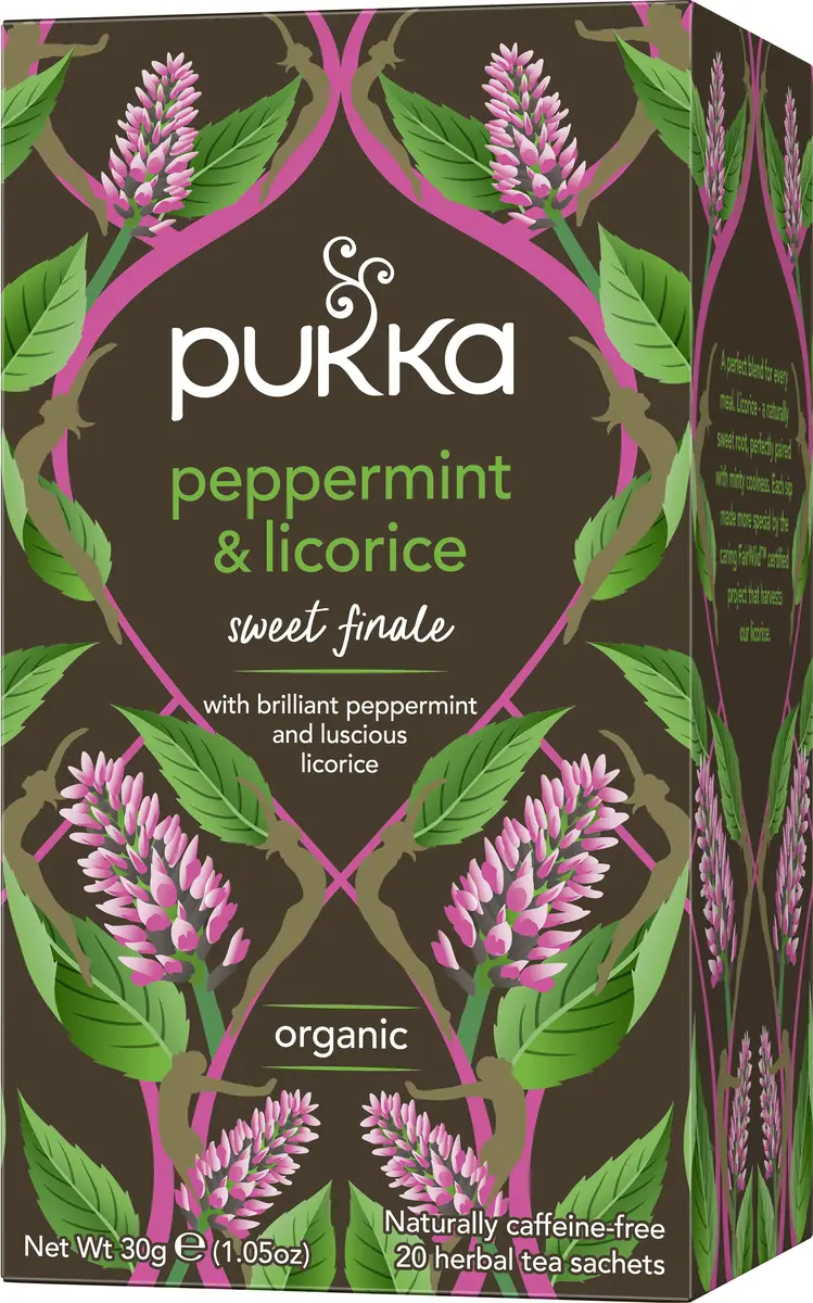 Ett te med pepparmyntans friska smak och den naturliga sötman från lakrits. Framtaget i samband med vårt tioårsjubileum. Naturligt koffeinfri. Ekologisk, Fair for life samt Fairwild.