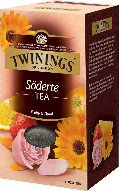 Söderte 25p. Fruktigt svart te blandat med rosenblad och ringblomma. Ljus ringblomma och delikata rosenblad lägger en twist till detta blommiga, fruktiga svarta te. Smaker av jordgubb och fläder ger en saftig sötma och ihop med den gräddiga vaniljsmaken är det verkligen oemotståndligt.