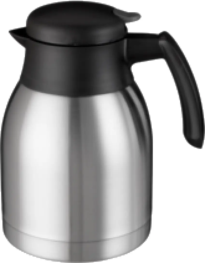 Dubbelmantlad med isolering, med skruvlock och tryckknapp för servering.
