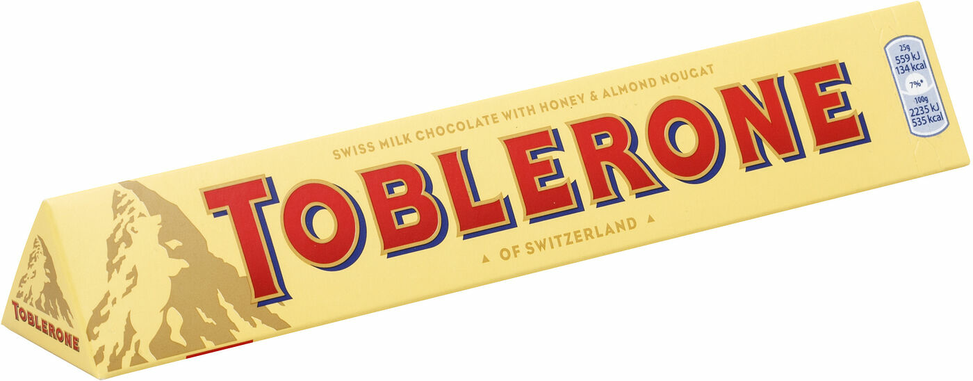 Den Schweiziska Toblerone är en sann ikon som funnits i mer än 100 år och är lika populär nu som då. Den triangulära chokladen är en mix av mjölkchoklad med honung och mandelnougat - en perfekt kontrast mellan mjukt och knaprigt!