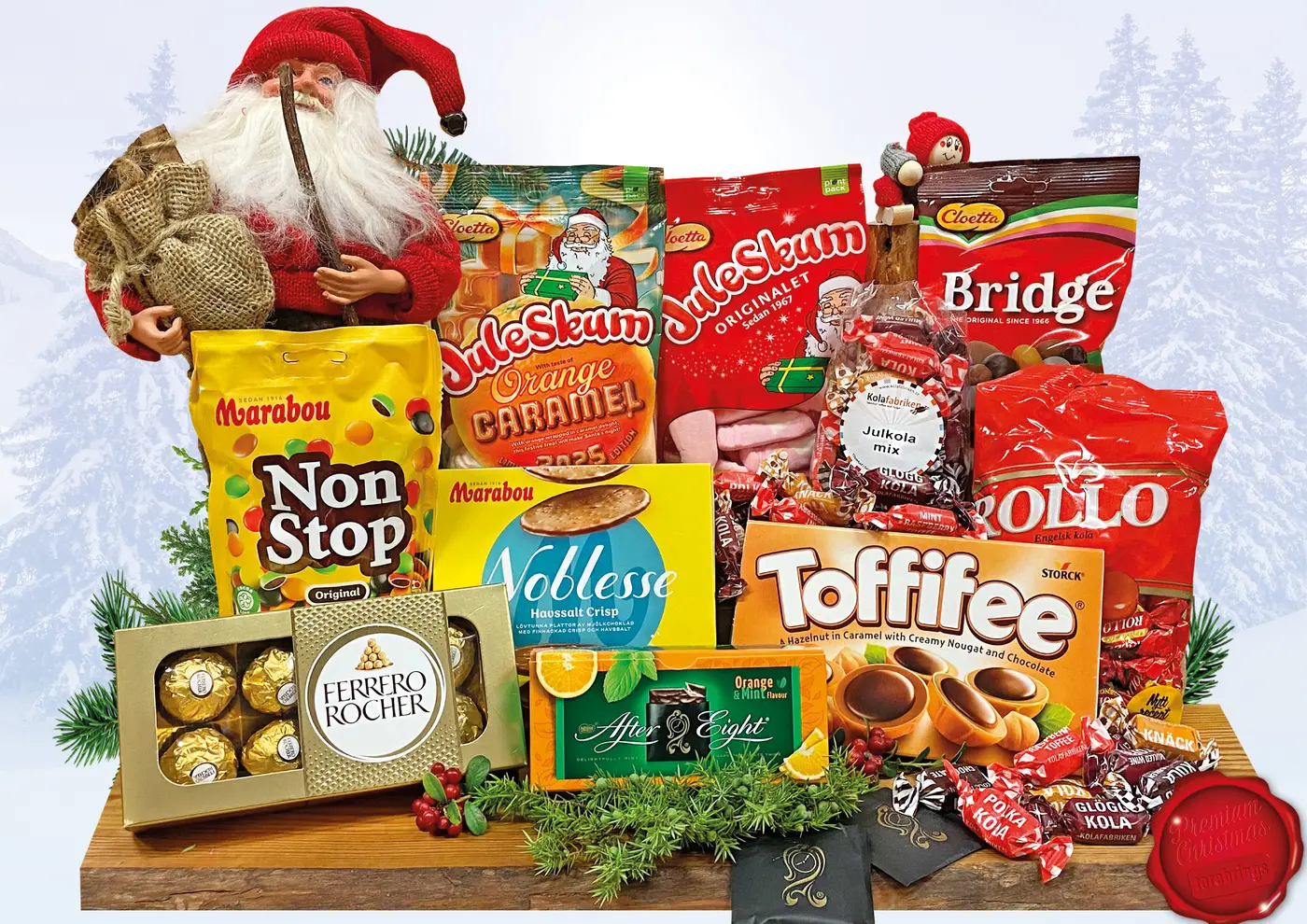 När tomten väljer sitt favoritgodis blir det hela tolv sorter. Alla är helt oumbärliga på gottebordet!