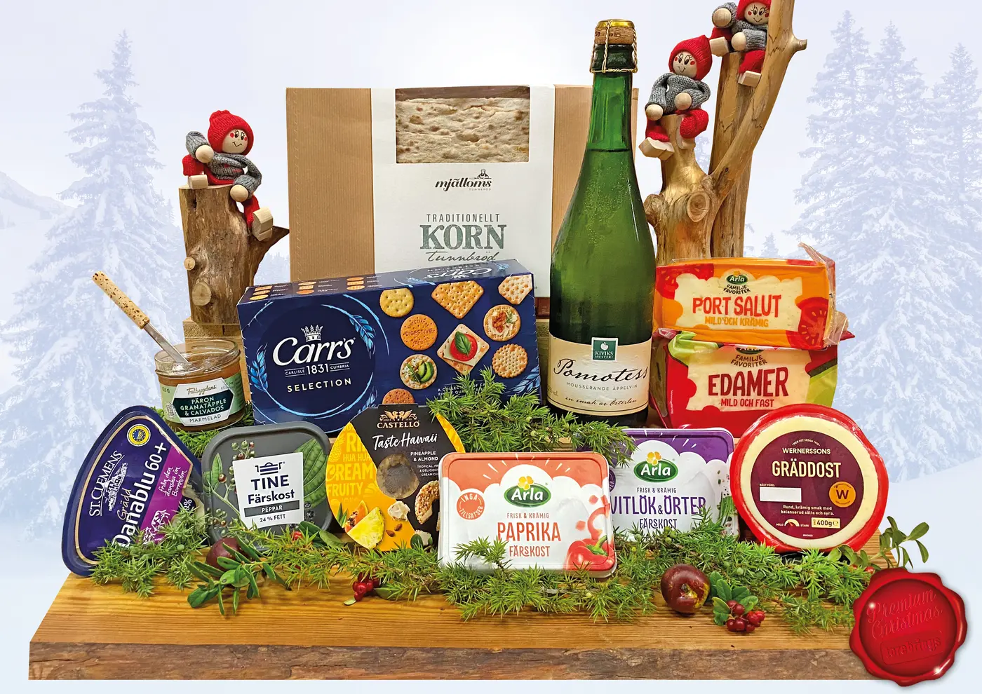 Tomtelåda Ostbuffé 2025 matgåva innehåller: