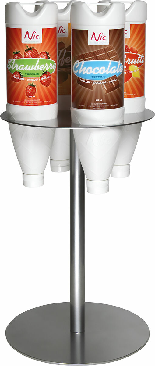 Snurrställ för fyra flaskor topping. OBS! Toppingflaskor ingår ej.