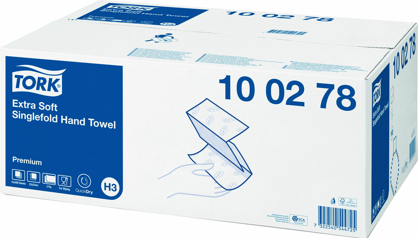 Gör det bekvämt för dina gäster med Tork Extra Mjuk Singlefold Handduk som är skonsamma mot huden och har en känsla av hög kvalitet. Dessa handdukar passar i Tork Dispenser Singlefold/C-fold Handduk för krävande miljöer. Den minskar förbrukningen och avfallet med hjälp av tillförlitlig utmatning av ett ark i taget.