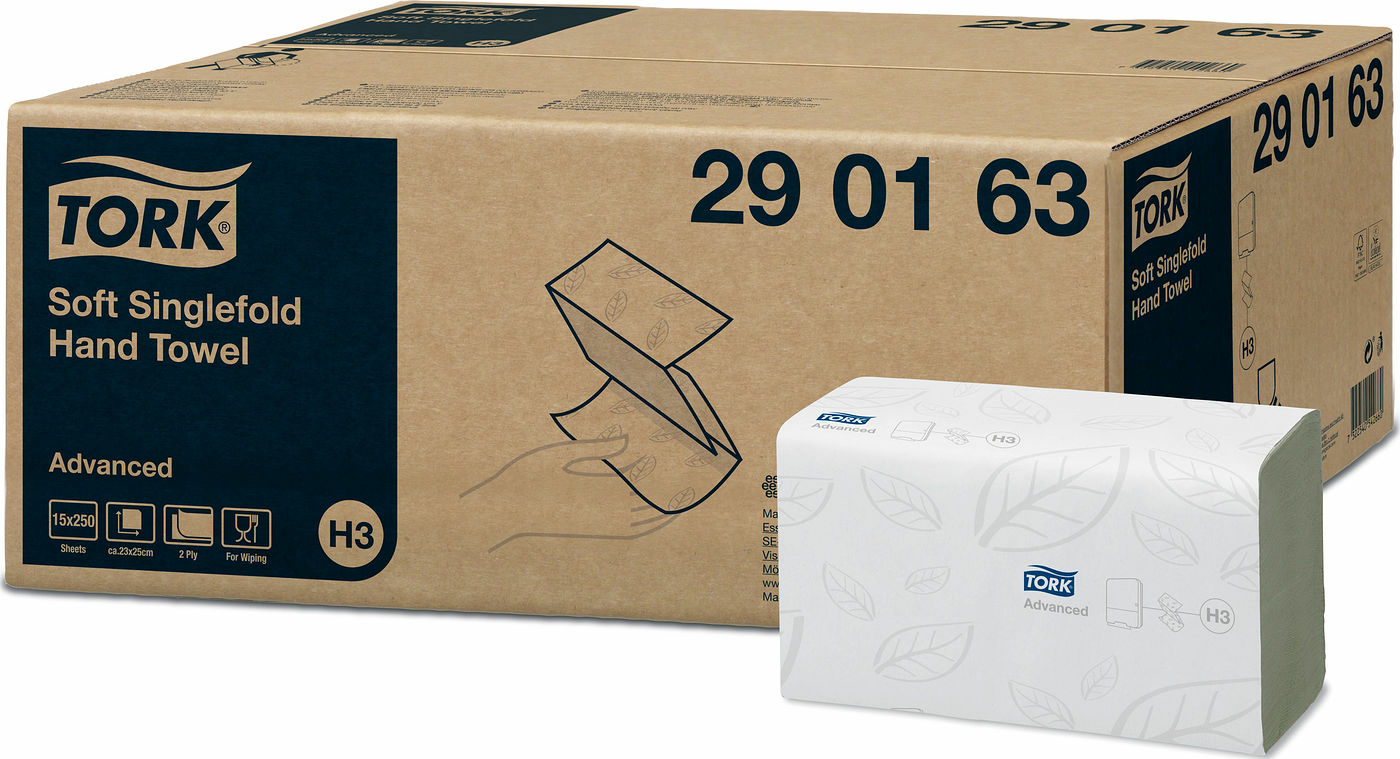 Tillgodose handavtorkningsbehoven med Tork Singlefold Handduk i Advanced-kvalitet som har rätt kvalitet för miljöer där kostnad och prestanda är lika viktiga faktorer. Dessa handdukar passar i Tork Dispenser Singlefold/C-fold Handduk för krävande miljöer. Den minskar förbrukningen och avfallet med hjälp av tillförlitlig utmatning av ett ark i taget.