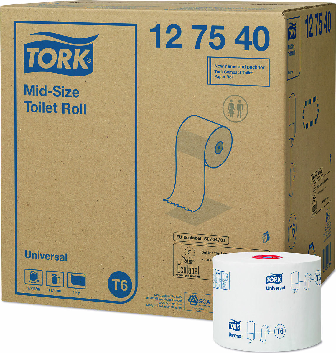 Tork Mid-size Toalettpappersrulle Universal – 1 lager T6