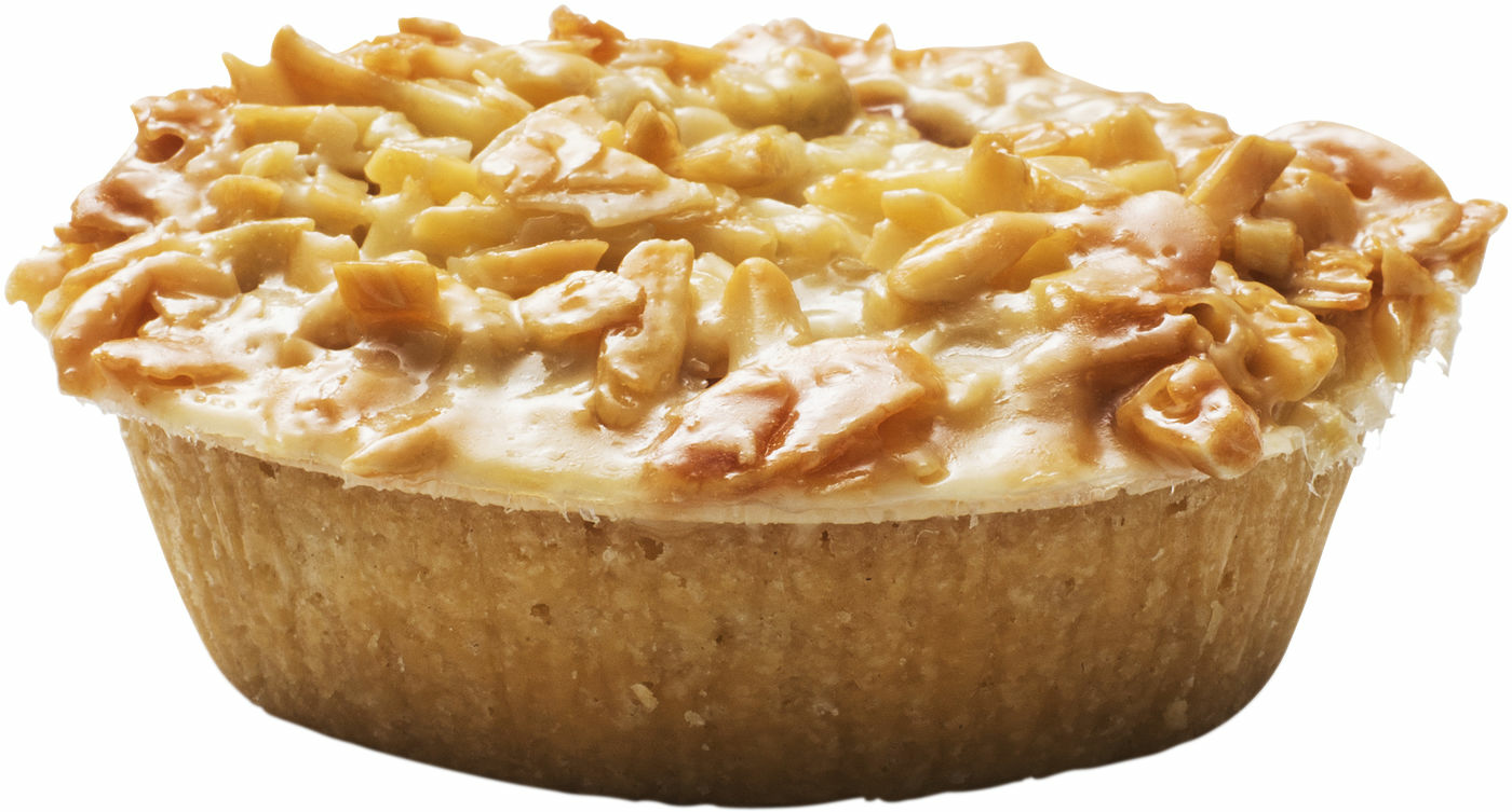 Knäckigt toscatäcke av mandel, på en porös mazarinbotten.