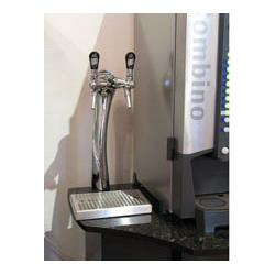 Underskåp i svart plåt med kylaggregat samt tappkran för kallt och kolsyrat vatten.