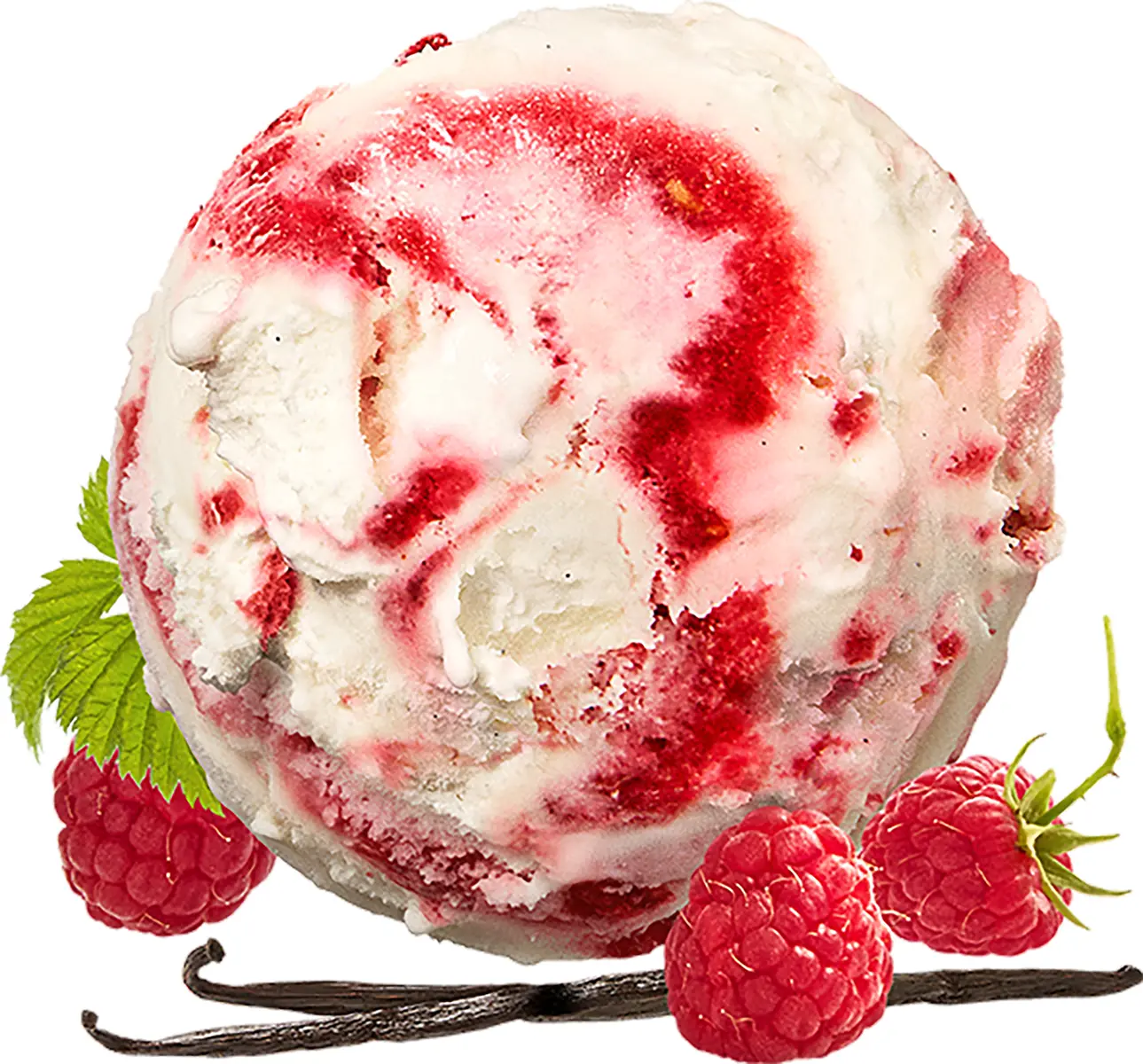 Ingredienser: SKUMMJÖLK*, GRÄDDE* (21%), socker*, hallon, druvsocker, SKUMMJÖLKSPULVER*, glukossirap, naturlig arom, arom, vaniljfrön, emulgeringsmedel (mono- och diglycerider av veg fettsyror), stabiliseringsmedel (fruktkärnmjöl, guarkärnmjöl, pektin). *Ursprung: Sverige. Hallon är inte från Sverige. Grädde med 40% fetthalt.