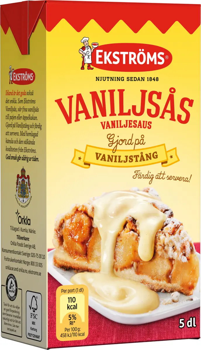 Fresta Marsán Vaniljsås är en svensk klassiker gjord på äkta vanilj och färdig att servera. Passar perfekt tillsammans med din favoritkaka eller äppelpaj till efterätt. Med hemlagad känsla och den välkända kvaliteten från Ekströms. Besök ekstroms.se för att läsa mer om Ekströms historia och alla produkter. God smak går aldrig ur tiden!