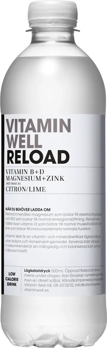 Vitamin Well Reload innehåller magnesium som bidrar till elekrolytbalansen och biotin och B12 som bidrar till normal energiomsättning. Dessutom innehåller den vitamin D som bildas naturligt i huden när du är i solen.