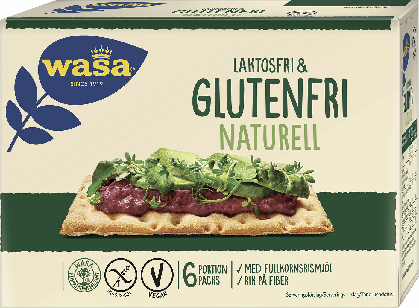 Wasa Knäckebröd Naturell Glutenfri är ett delikat knäcke med en vacker gyllene färg. Glutenfritt knäckebröd passar hela familjen eftersom det dessutom är laktosfritt och veganskt. Den naturella smaken på vårt glutenfria hårdbröd låter ditt pålägg få en framträdande roll. En krispig, laktosfri knäckemacka blir även ett utmärkt tillbehör till din måltid. För att hålla ditt glutenfria knäcke färskt och krispigt längre har det förpackats i smidiga portionsförpackningar. Wasas laktosfria bröd är självklart 100% klimatkompenserat.