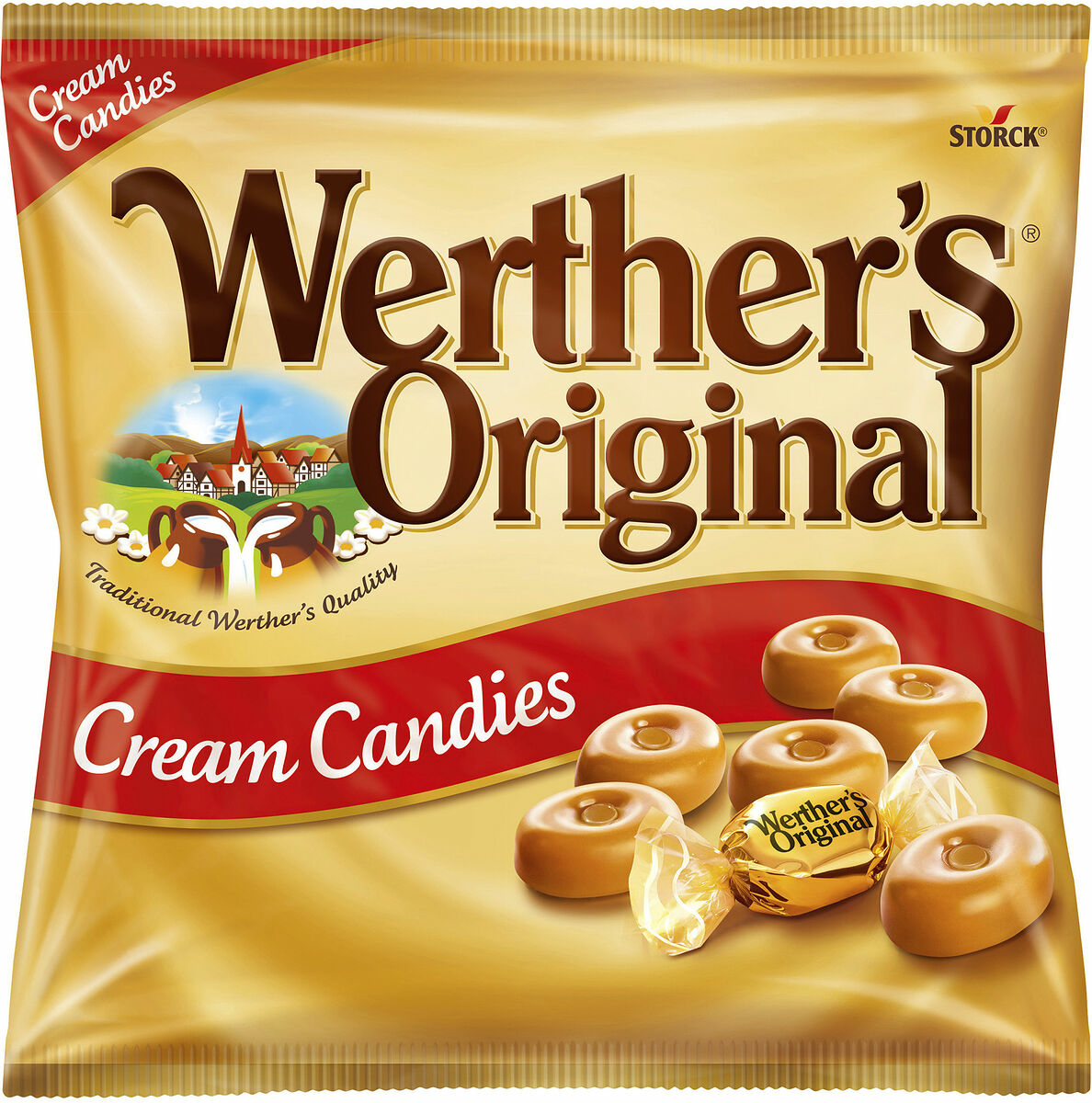 Njut av Werthers Original karameller. Det klassiska godiset gjort på äkta smör och grädde som tillsammans skapar den unika smaken av Werthers karamell. I flera generationer har Werthers Original stått för en oförglömlig smak och söta minnen från barndomen. Noggrant tillverkade med kärlek från de bästa ingredienserna, skapar dessa härligt lena och krämiga gräddkarameller gyllene ögonblick för dig och din familj. Werthers Original är så god att varje karamel är individuellt inslagen i guld. Godispåsen innehåller 135g karameller.
