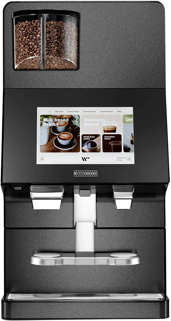 Upptäck W100, den senaste innovationen från Wittenborg, framtagen för att leverera en förstklassig kaffeupplevelse i alla miljöer. Utvecklad för att kombinera pålitlighet, hög kvalitet och intuitiv enkelhet säkerställer W100 att varje kopp uppfyller de högsta kraven på smak och njutning.