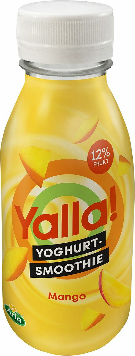 Uppfriskande och god yoghurt-smoothie med frisk smak av mango. Yalla! är ett perfekt mellanmål som både släcker törsten och mättar. Yoghurt-smoothien, som har en extra hög frukthalt, innehåller varken konserveringsmedel eller färgämnen. Den praktiska flaskan med skruvlock gör att produkten enkelt kan ätas i farten eller tas med i väskan till träningen.